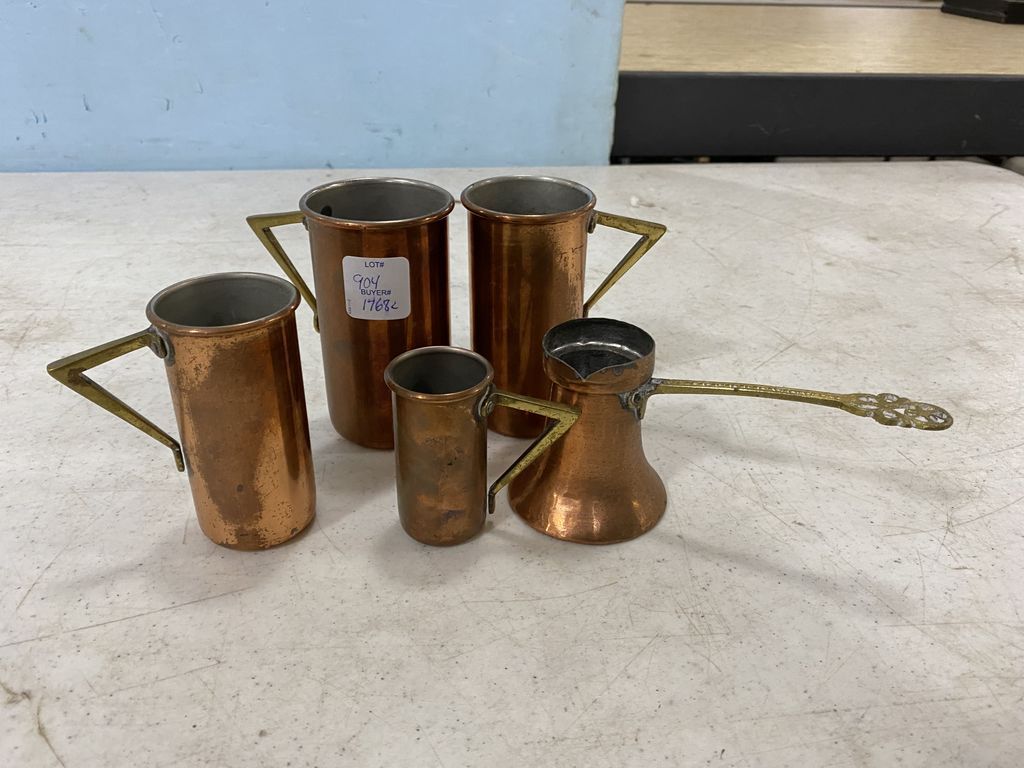 Brass measuring cups, five pieces. Brass measuring cups, five pieces.