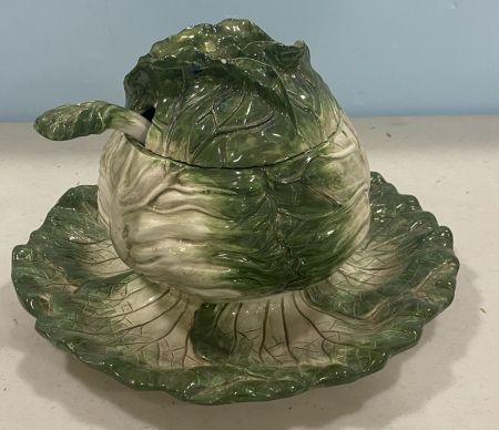 Green Ceramic Soup Tureen and Plate, included ladle. Green Ceramic Soup Tureen and Plate, included ladle.