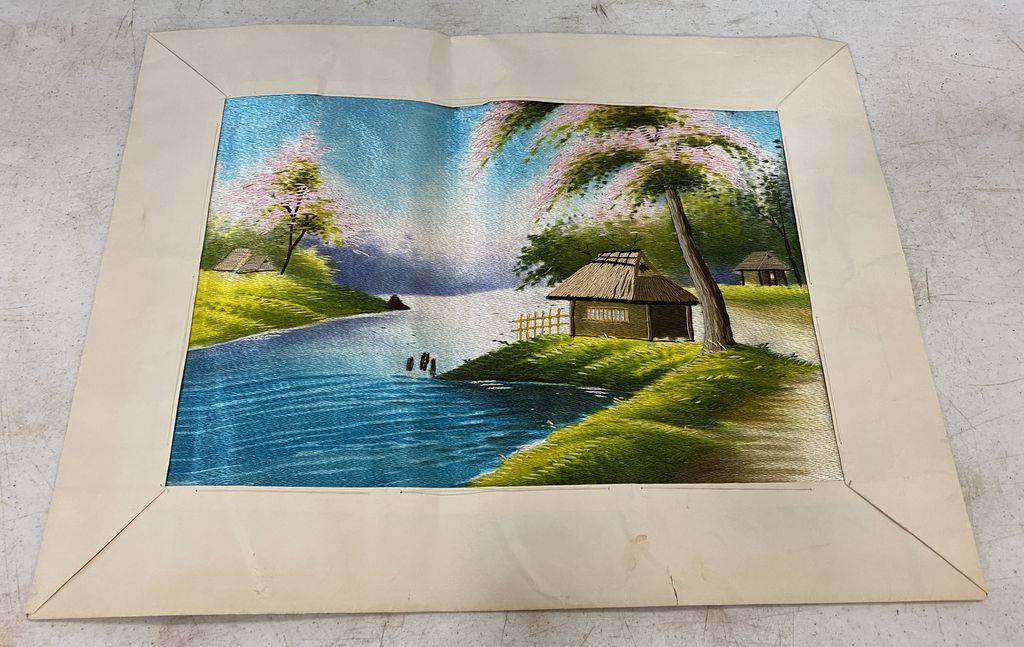 Oriental Style Woven Landscape. Unframed. 19" x 15" Oriental Style Woven Landscape. Unframed. 19" x 15"