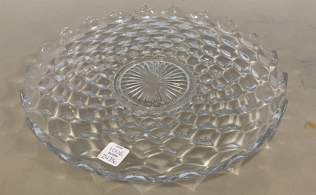 Fostoria Cut Glass Under Platter, American Clear Pattern, good condition. Fostoria Cut Glass Under Platter, American Clear Pattern, good condition.