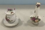 Old Country Roses Royal Albert Covered Sugar and Montrose Bud Vase Old Country Roses Royal Albert Covered Sugar and Montrose Bud Vase