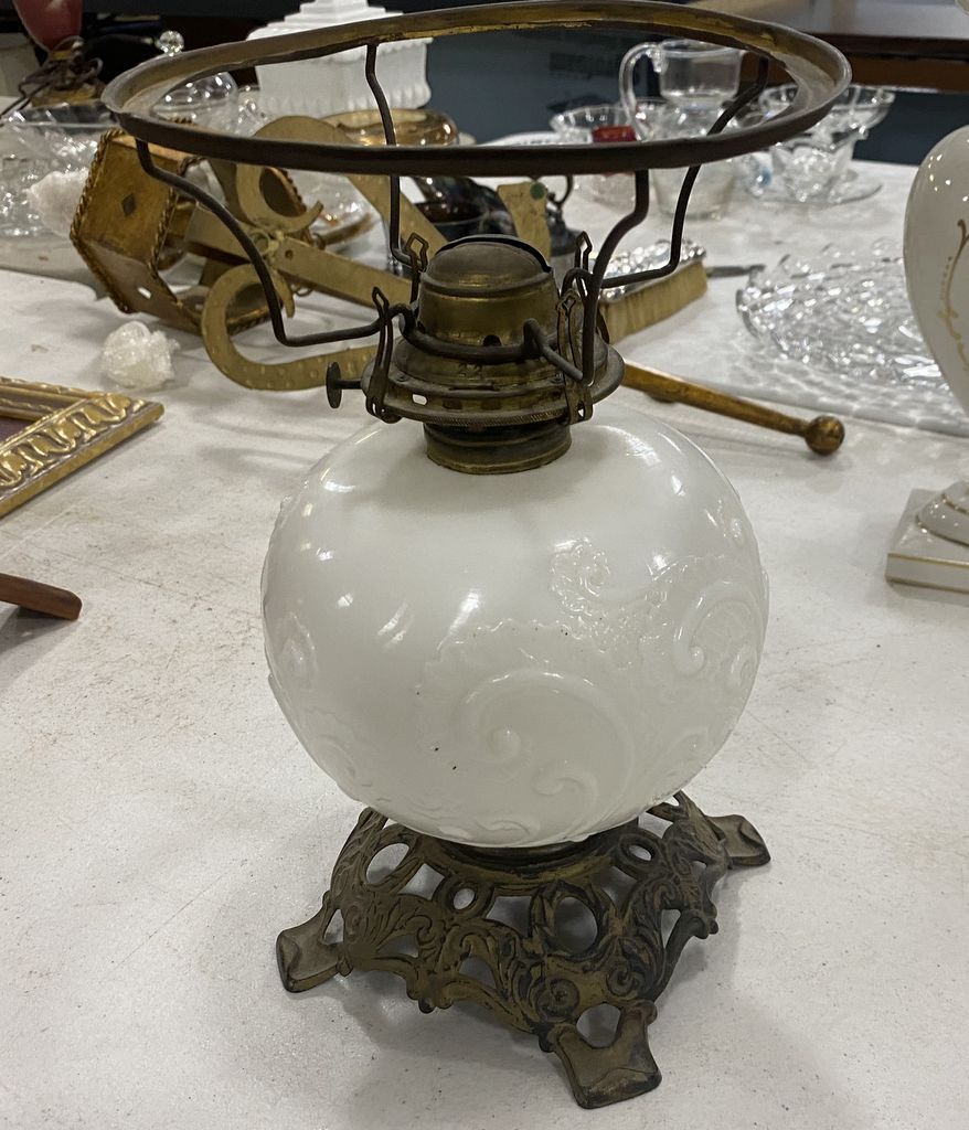 Vintage Oil Lamp without shade, metal base, milk glass. Vintage Oil Lamp without shade, metal base, milk glass.