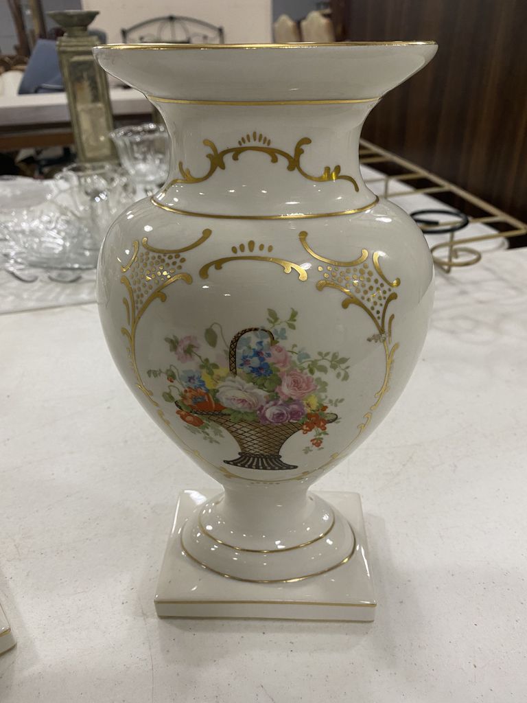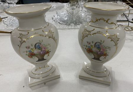Pair of Porcelain Vases, hand painted floral design with gold gilt trim work, Pair of Porcelain Vases, hand painted floral design with gold gilt trim work,