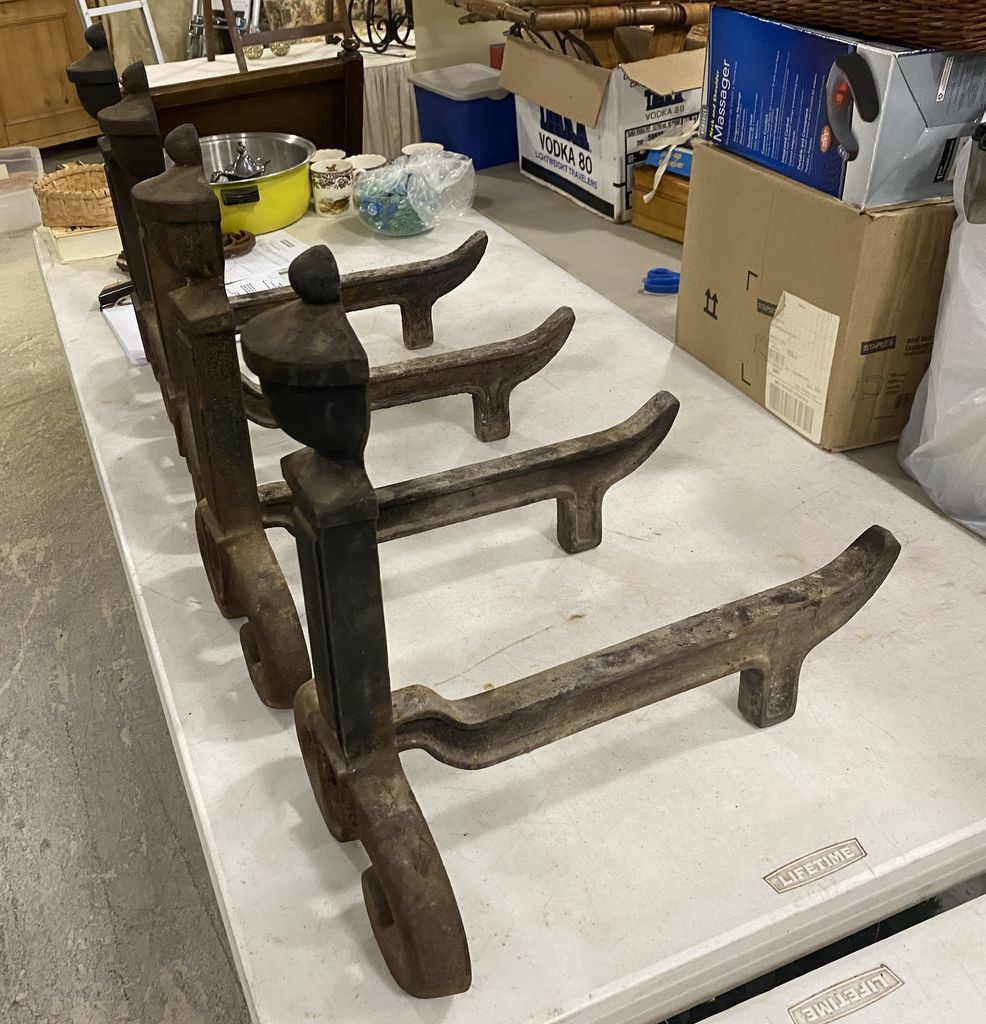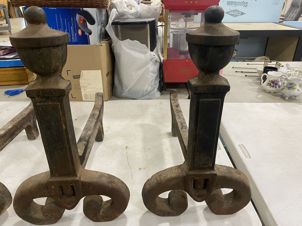 2 Sets of Andirons, antique, iron, age wear, good condition. 2 Sets of Andirons, antique, iron, age wear, good condition.