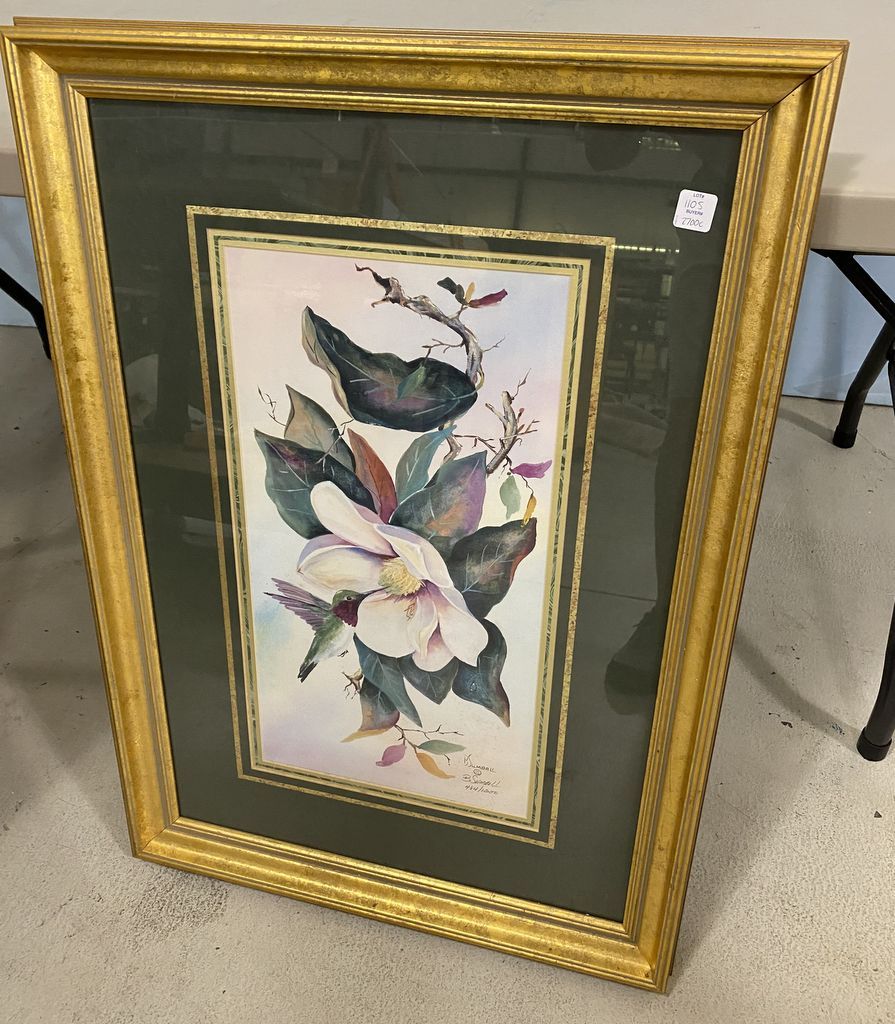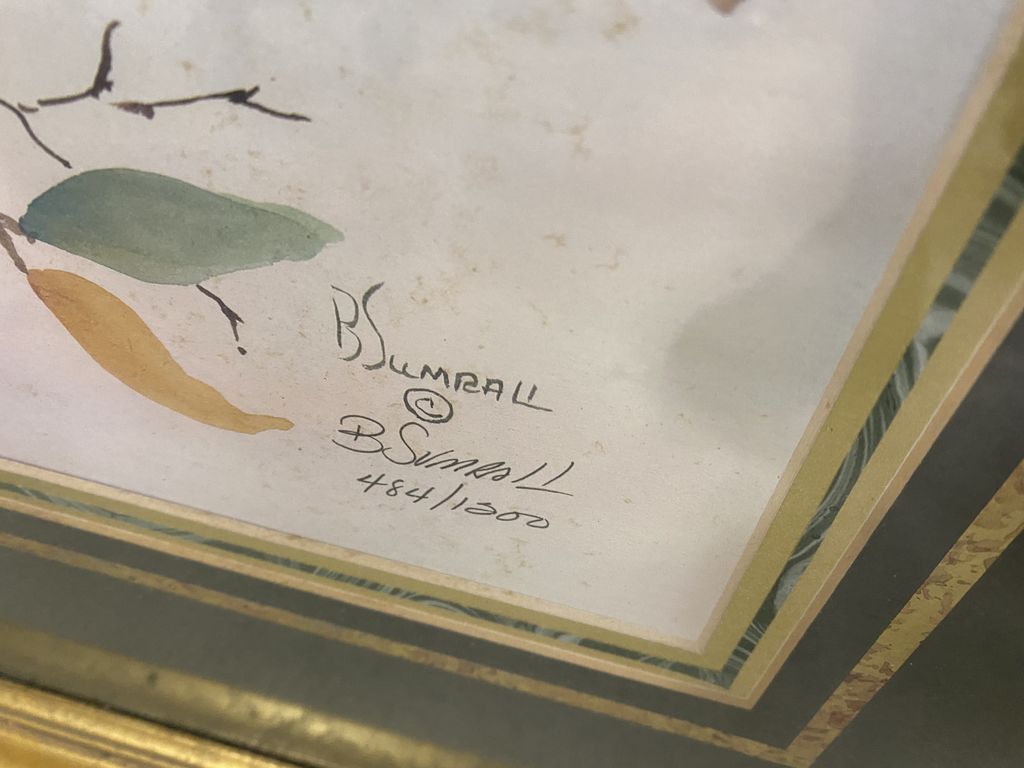 B Sumrall 484/1200 Magnolia Print, artist signed, matted, gold gilt framed, 33"h., 23"w. B Sumrall 484/1200 Magnolia Print, artist signed, matted, gold gilt framed, 33"h., 23"w.