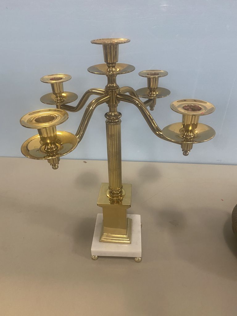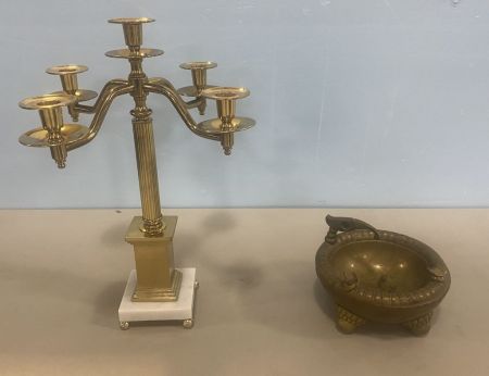 1116 Brass Cigar Ashtray and Gold 5-Light Candelabra