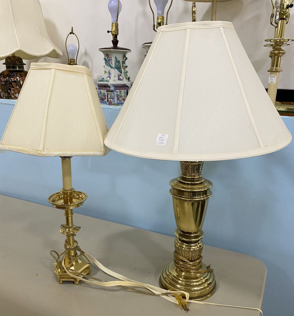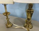 Two Brass Table Lamps, Candlestick and Vase Style lamps, 30"h. Two Brass Table Lamps, Candlestick and Vase Style lamps, 30"h.