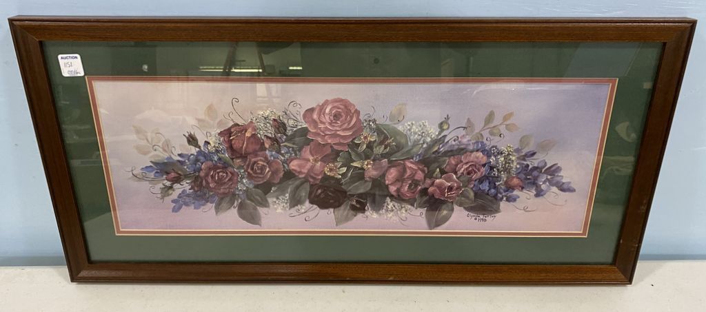 Glynda Turley 1990 Floral Print, matted, framed, 13"h., 30"w. Glynda Turley 1990 Floral Print, matted, framed, 13"h., 30"w.