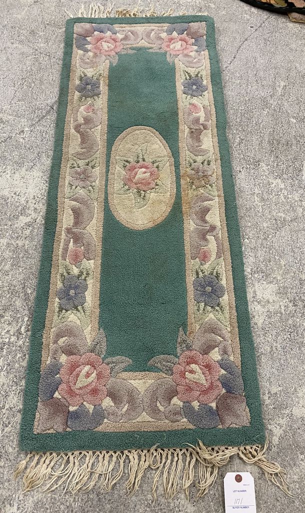 Elegant Hand Tufted Chinese Rug. Cotton. has stain. 1'8 x 4'6 Elegant Hand Tufted Chinese Rug. Cotton. has stain. 1'8 x 4'6