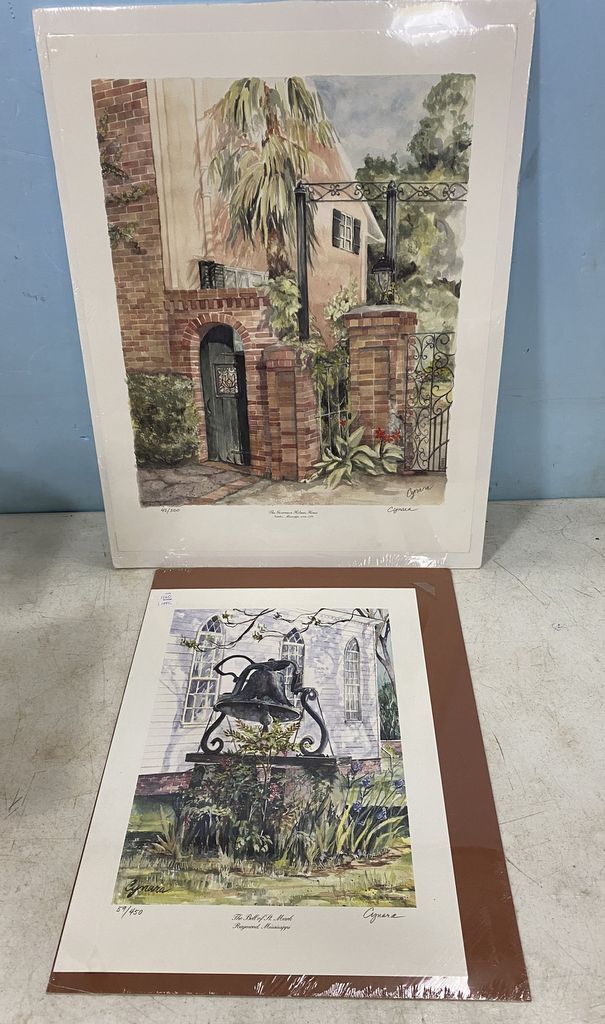 Governor Holmes House and Bell of St. Mark by Cynara Prints, Mississippi Artist, 42/500, 59/450, 19"h., 14"w. Governor Holmes House and Bell of St. Mark by Cynara Prints, Mississippi Artist, 42/500, 59/450, 19"h., 14"w.