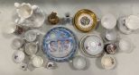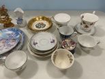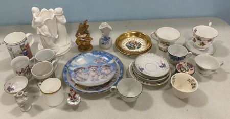 Assorted Porcelain Cups, Candle Holder, and Plates. Assorted Porcelain Cups, Candle Holder, and Plates.