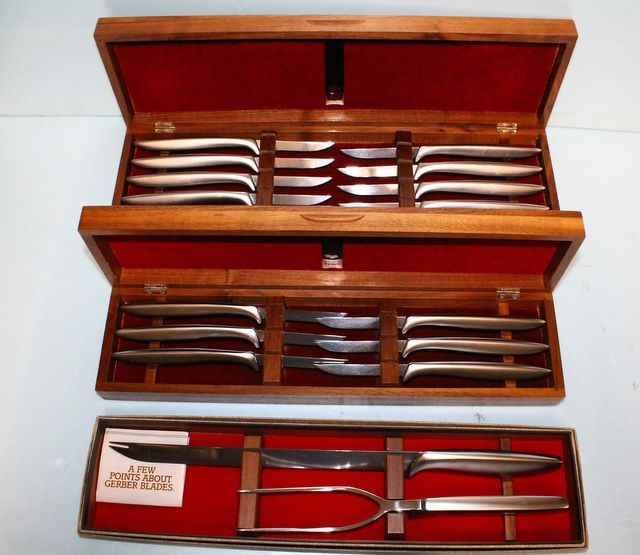 328 Gerber Carving Set, Set of Four Gerber Steak Knives & Set of Eight Gerber Steak Knives in Box