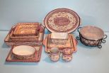 Three casseroles, platters, bowls, creamer and sugar Three casseroles, platters, bowls, creamer and sugar