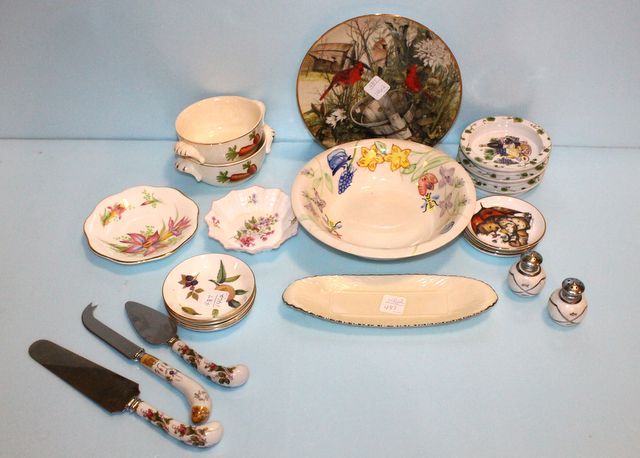 Hand painted plates, bowl, small 3" dishes, spreaders and shakers Hand painted plates, bowl, small 3" dishes, spreaders and shakers