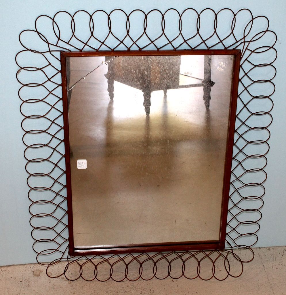 Mirror is cracked; 27" w., 32" h. Mirror is cracked; 27" w., 32" h.
