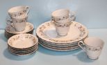 Consists of five dinner plates, five saucers, five cups and five berry bowls Consists of five dinner plates, five saucers, five cups and five berry bowls