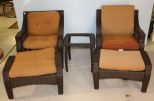 799 Two Brown Wicker Chairs, Two Stools & Side Table
