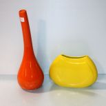 Green Vase 11 " w.; Orange Vase 19" h. Green Vase 11 " w.; Orange Vase 19" h.