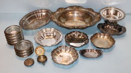 827 Silver plate Lot of Various Size Bowls & 8 Silver plate Coasters