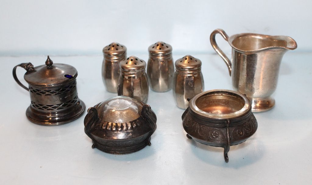 852 Salt/Pepper Shakers, Miniature Creamer, Condiment & Two Individual Salts