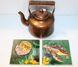 869 Copper Tea Pot & Two Tiles