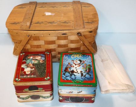 876 Vintage Picnic Basket, Placemats & Tin Boxes
