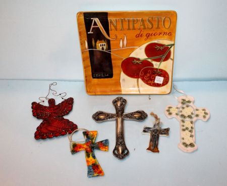 908 Ceramic Tray & Six Various Crosses