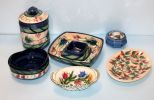 Cookie jar, heart shaped dish, small platter, small 8" oval bowl Cookie jar, heart shaped dish, small platter, small 8" oval bowl