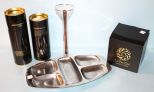 1108 Two Riedel Stem Glasses, Divided International Stainless Tray, La-Tee Insence Burner