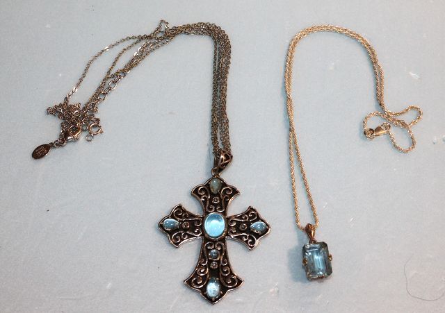 1150 .925 Thailand Cross, Necklace with Blue Glass .925 Clasp
