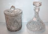 1306 Cut Glass Biscuit Jar & Stuart Ships Decanter