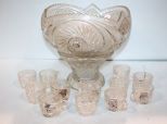 1319 Pressed Glass Punch Bowl & 12 Cups