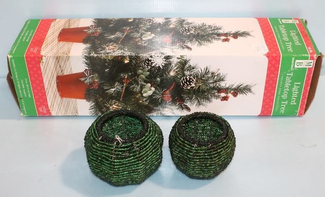 1357 Tabletop Lighted Christmas Tree & Two Green Candleholders