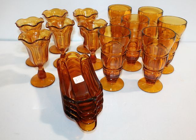 1363 Six Amber Glasses, Six Amber Sundae Glasses & Four Amber Banana Split Dishes