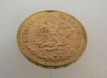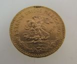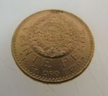 Restruck 1959, Estados Unidos Mexicanos, Aztec Calender "Piedra del Sol", Veinte Pesos, 15 gr., oro puro. edge smooth with lettering, 27.5 mm, 16.67 grams. Restruck 1959, Estados Unidos Mexicanos, Aztec Calender "Piedra del Sol", Veinte Pesos, 15 gr., oro puro. edge smooth with lettering, 27.5 mm, 16.67 grams.
