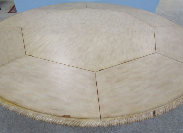 Has 8 side leaves, pedestal base, 30"h., 56"w. Has 8 side leaves, pedestal base, 30"h., 56"w.