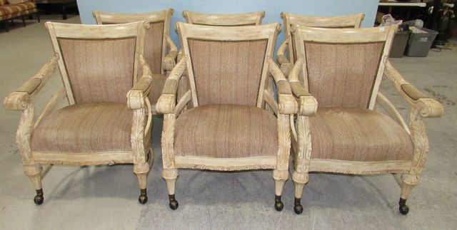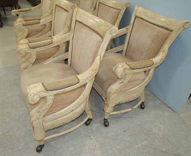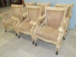French style, upholstered, on wheels. 36"h. French style, upholstered, on wheels. 36"h.
