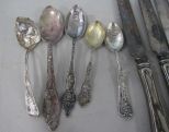 350 Five Sterling Demitasse Spoons and Three Sterling Handle Butter Knives