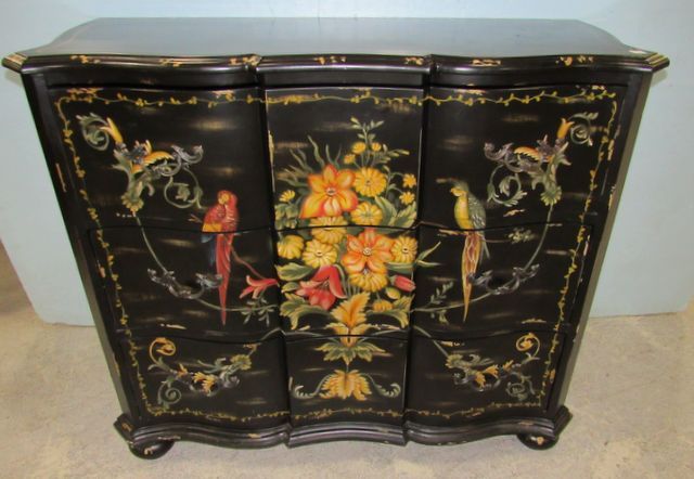 Machine painted and floral design, top drawer needs some adjusting, 42"h., 49"w. Machine painted and floral design, top drawer needs some adjusting, 42"h., 49"w.