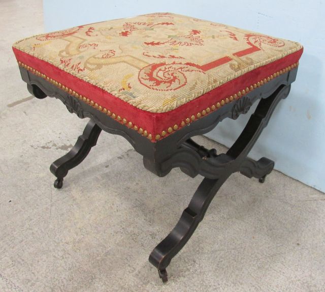 398 Vintage French Style Cross Leg Ottoman