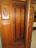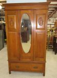 Mirrored door, one bottom drawer, average condition, breaks down, carved decor on side panels, 78"h. 42"w. Mirrored door, one bottom drawer, average condition, breaks down, carved decor on side panels, 78"h. 42"w.