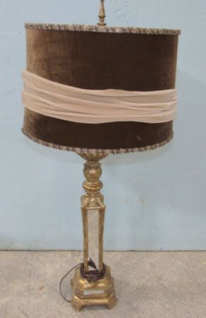 Upholstered lamp shade, 34"h. Upholstered lamp shade, 34"h.