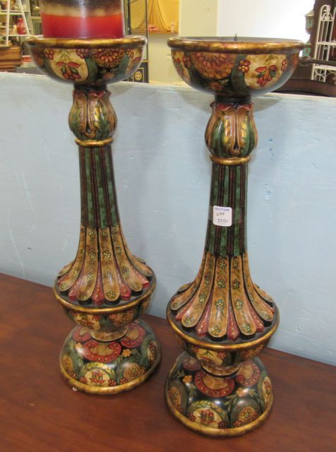 699 Modern Resin Hand Painted Pair of Candle Holders