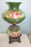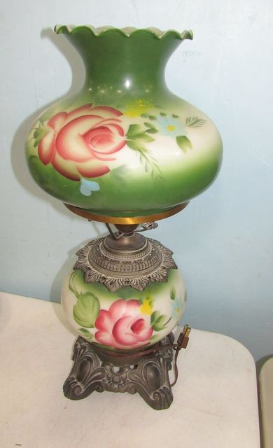 With shade, floral design, needs tightening, 22"h. With shade, floral design, needs tightening, 22"h.