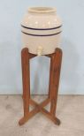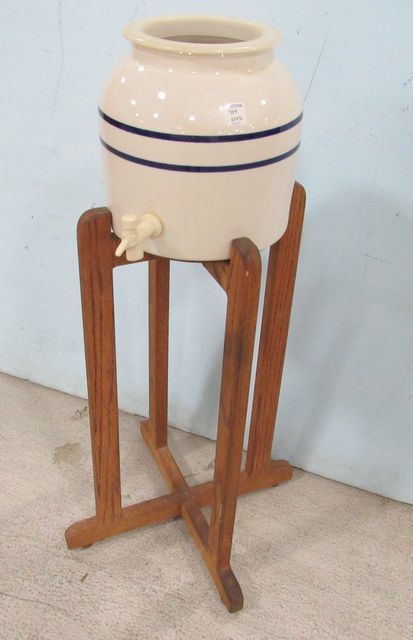 wood pedestal stand, crock missing top, 36"h. wood pedestal stand, crock missing top, 36"h.