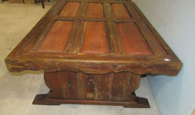 Heavy, distressed finish, short, 25"h., 73"L., 50"w. Heavy, distressed finish, short, 25"h., 73"L., 50"w.