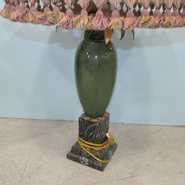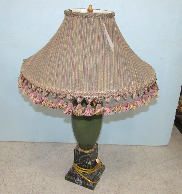 Resin base, upholstered lamp shade, 34"h. Resin base, upholstered lamp shade, 34"h.