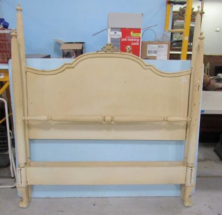 Full size, has rails, distressed, ball-n-claw foot board, needs some work. Full size, has rails, distressed, ball-n-claw foot board, needs some work.