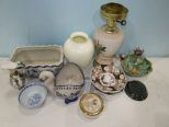 PFALTZGRAFF Vase, two asian design plates, Towles pottery, Swan planter, Action covered dish, AAA Imports planter, Vase, Glass Table Lamp. PFALTZGRAFF Vase, two asian design plates, Towles pottery, Swan planter, Action covered dish, AAA Imports planter, Vase, Glass Table Lamp.