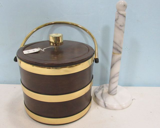 1224 Brass Faux Leather Ice Bucket and Marble Towel Pole